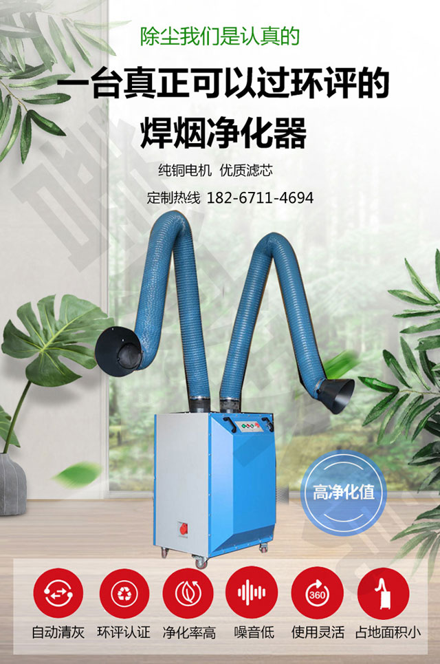 (8)便捷性。焊接烟尘净化器为立式单机净化器占地空间小,移动方便可在任意地方固定使用,便于工人的操作。
